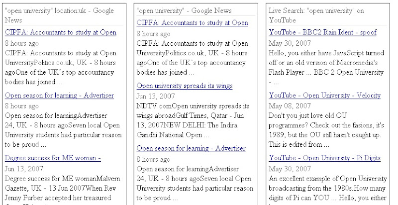 Picking up on the previous post on OPML Powered Dashboards, I couldn't resist seeing how easy it would be to build a demonstrator OPML powered dashboard using pre-existing components pulled off the web.